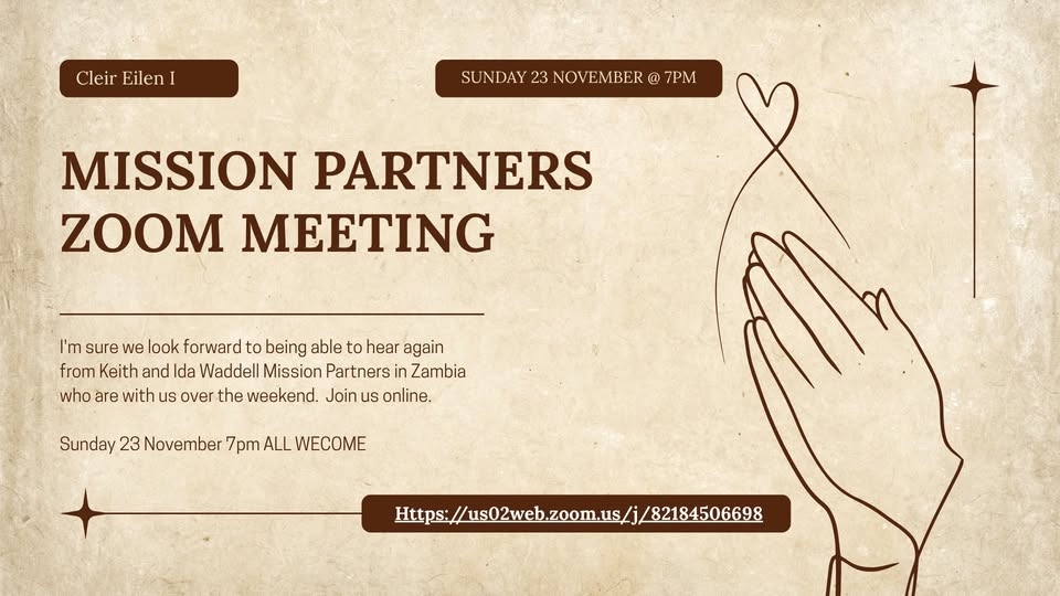 Come and join our Mission Partners - Keith and Ida Waddell for a wonderful evening online.